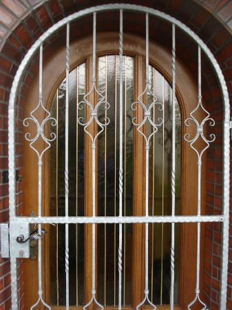 Rundbogentor vor einer Haustür. Feuererzinkt.